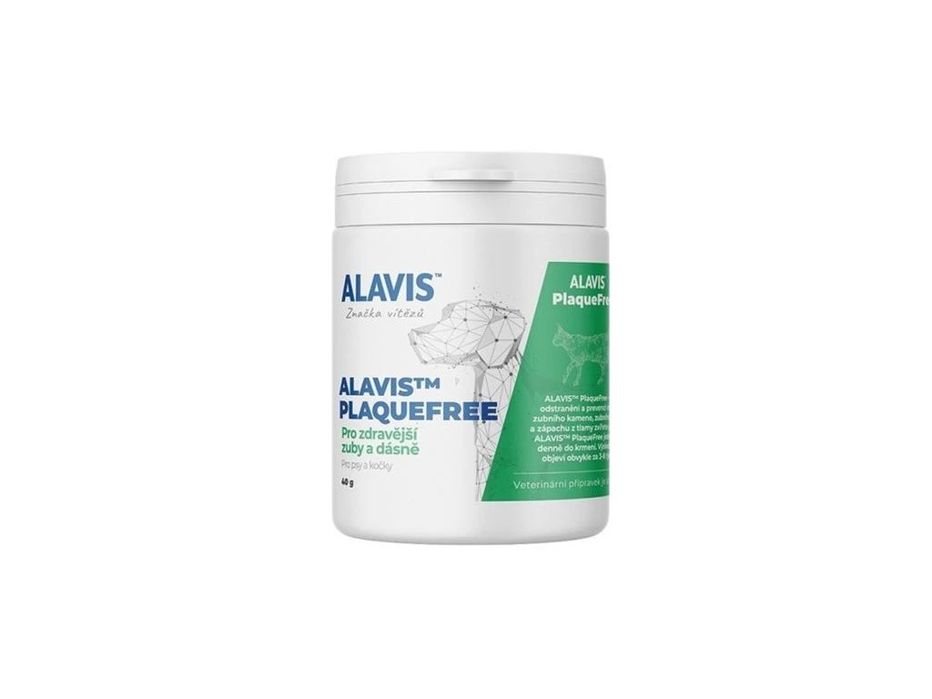 Alavis ™ PlaqueFree významne obmedzuje zubný plak a zubný kameň a odstraňuje zápach z papule.