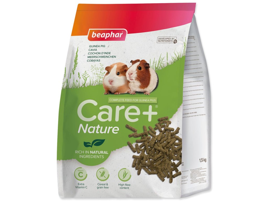 Beaphar Care+® Nature je kompletné krmivo bez obilnín pre morčatá s vysokým obsahom vlákniny a bohaté na prírodné zložky.