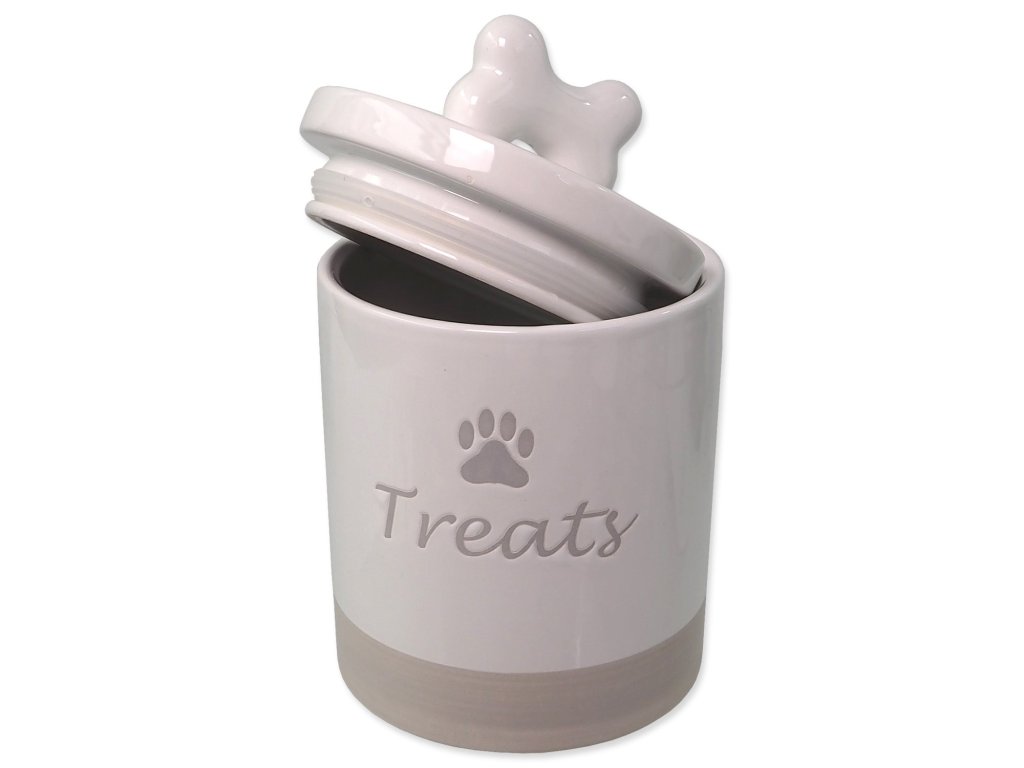 Táto elegantná keramická dóza je ideálna na skladovanie suchých pochúťok – od psích sušienok až po mačacie dobroty.