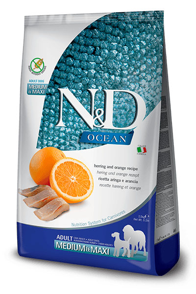 Farmina N&D dog OCEAN (GF) adult medium & maxi, herring & orange