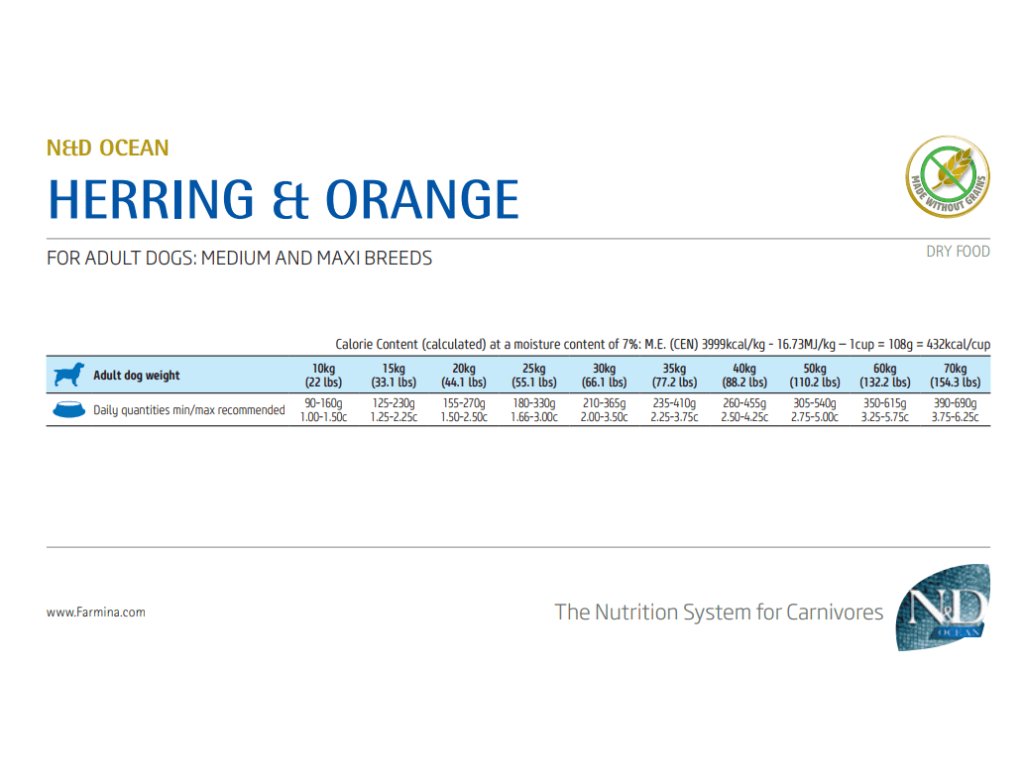 Farmina N&D dog OCEAN (GF) adult medium & maxi, herring & orange
