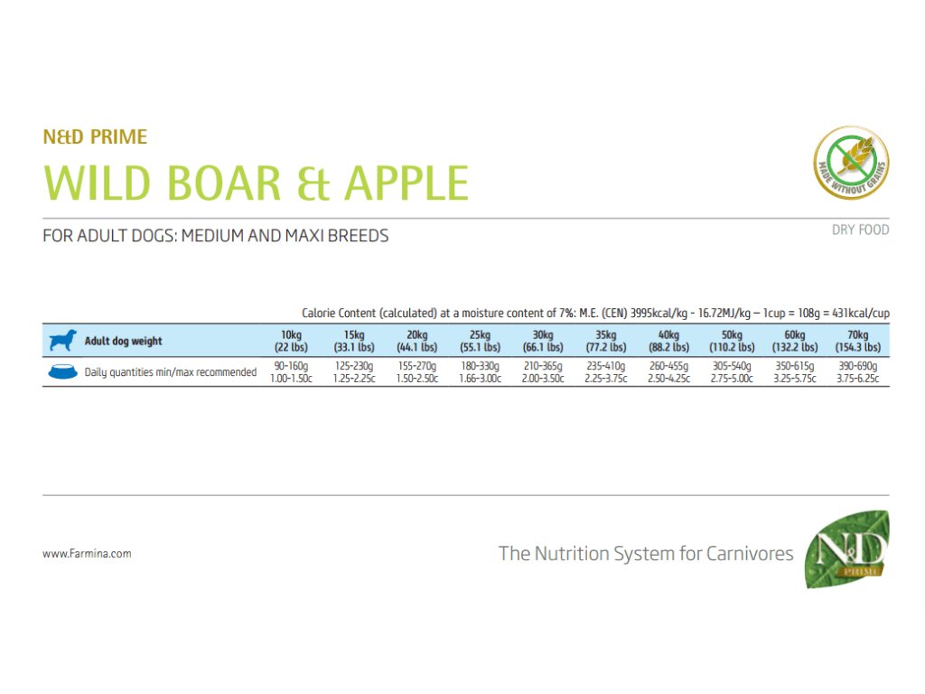 Farmina N&D dog PRIME (GF) adult medium & maxi, boar & apple
