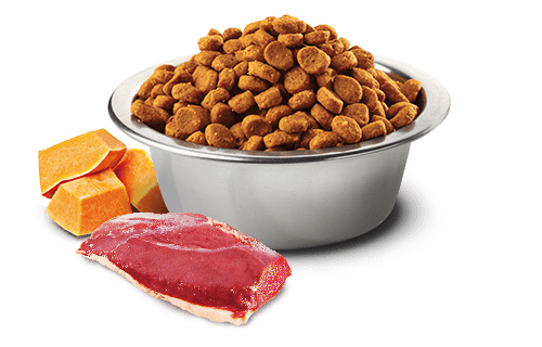 sladký zemiak, kuracíe tuk, sušená tekvica (5%), sušené vajcia,