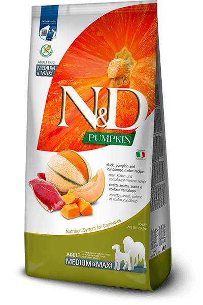 Farmina N&D pes PUMPKIN (GF) adult medium & maxi, duck & cantaluope 12 kg