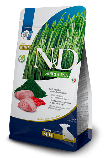 Farmina N&D pes Spirulina (GF) puppy mini lamb and goji