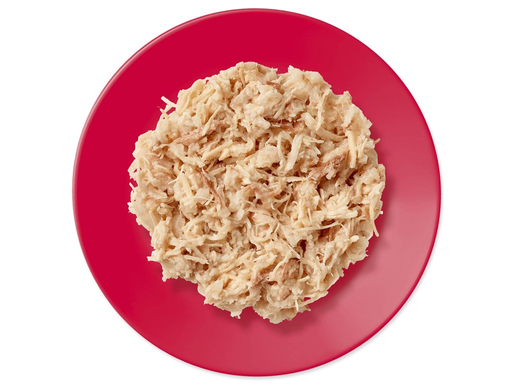 Zloženie: kuracie prsia 55%, hovädzie mäso 7%, rastlinná želírujúca látka.