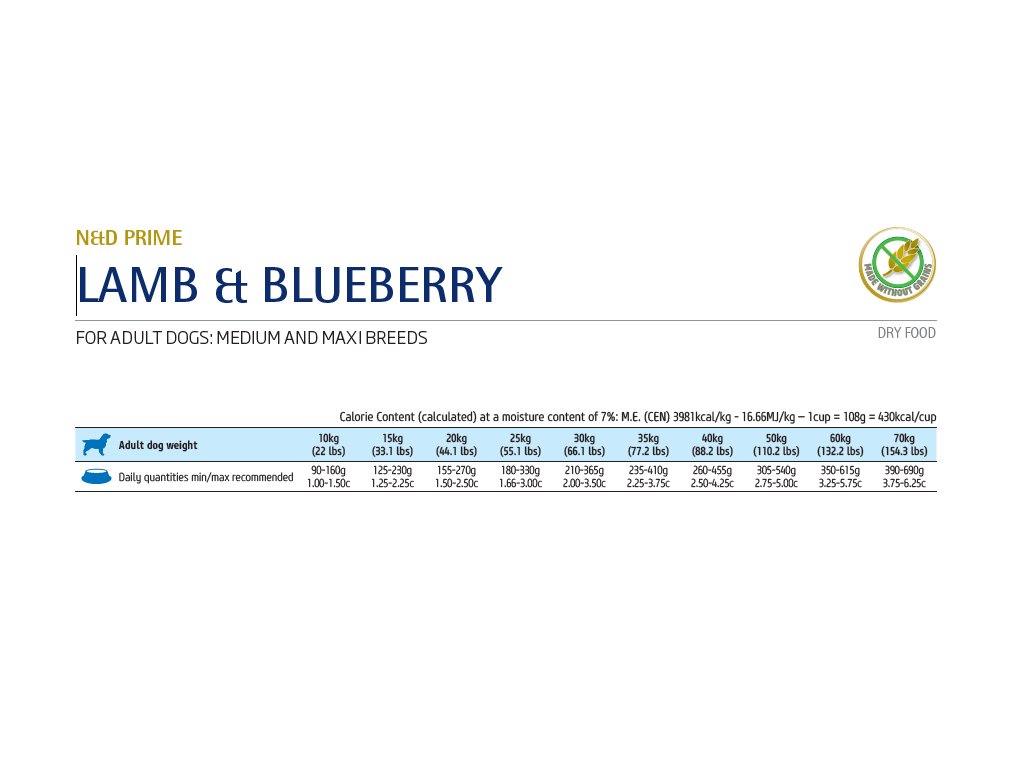 Krmivo N&D Dog Prime Adult Medium & Maxi Lamb & Blueberry