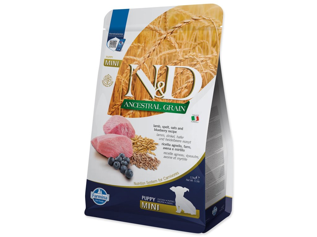 Krmivo N&D Dog Puppy Mini Ancestral Grain Lamb, Spelt, Oats & Blueberry 2,5kg