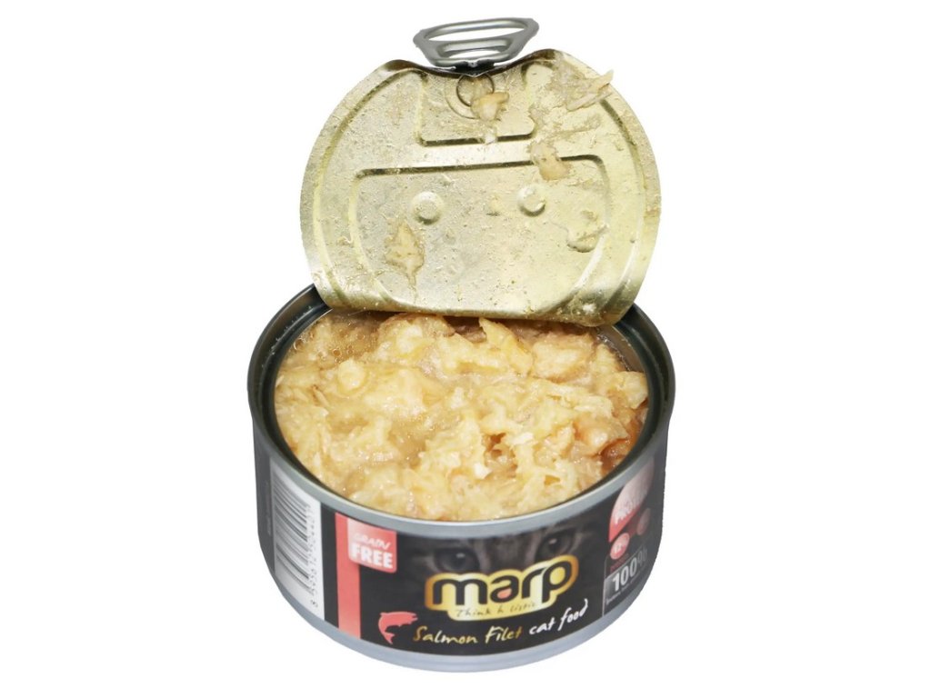 konzervy Marp obsahujú 100% bielkovín zo živočíšnych zdrojov. Tento najvyšší rad konzerv Marp obsahuje iba čistú svalovinu - kúsky mäsa z lososa. Oproti väčšine podobných produktov na trhu, ktoré pochádzajú z Ázie, sú tieto konzervy vyrábané v Nemecku.