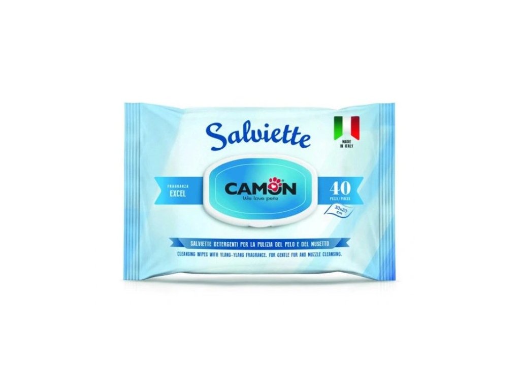 Vlhčené utierky na zvieratá Camon s vôňou Excel 40ks sú praktický pomocník na rýchle čistenie a prevoňanie srsti, labiek a okolia uší a očí psov a